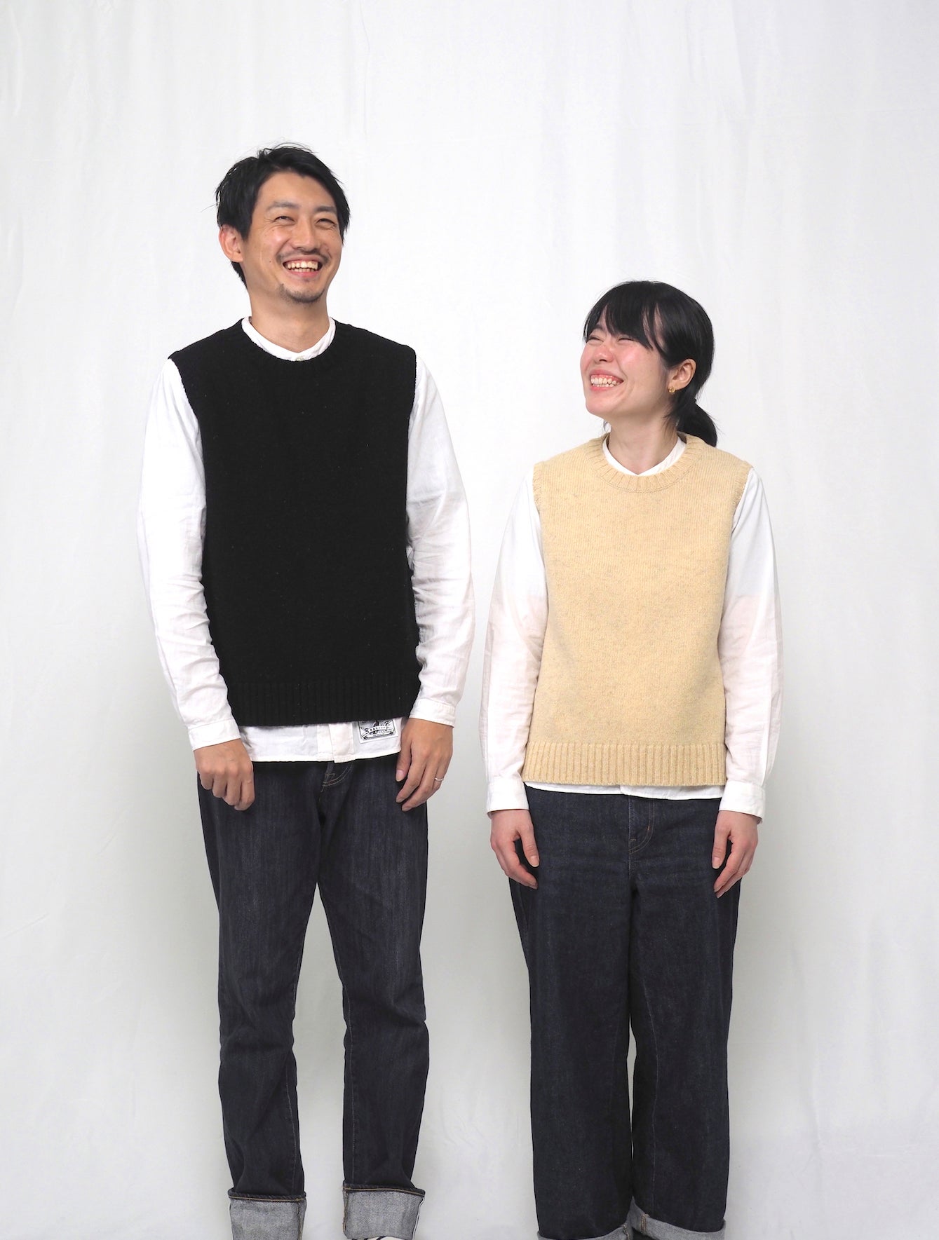 ① 21,000円 峯村サフォーク ニットベスト(生成り・ブラックの2色・各3サイズ)
