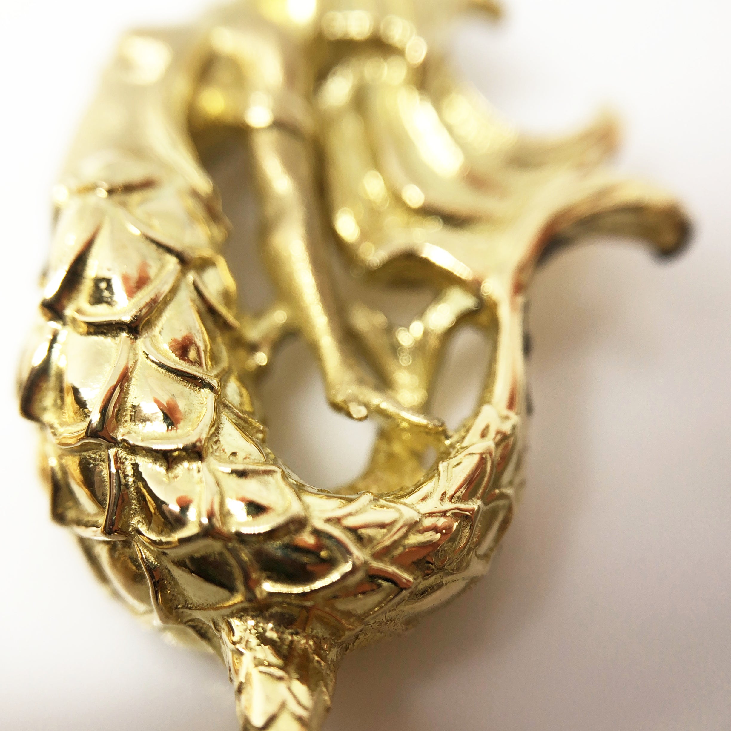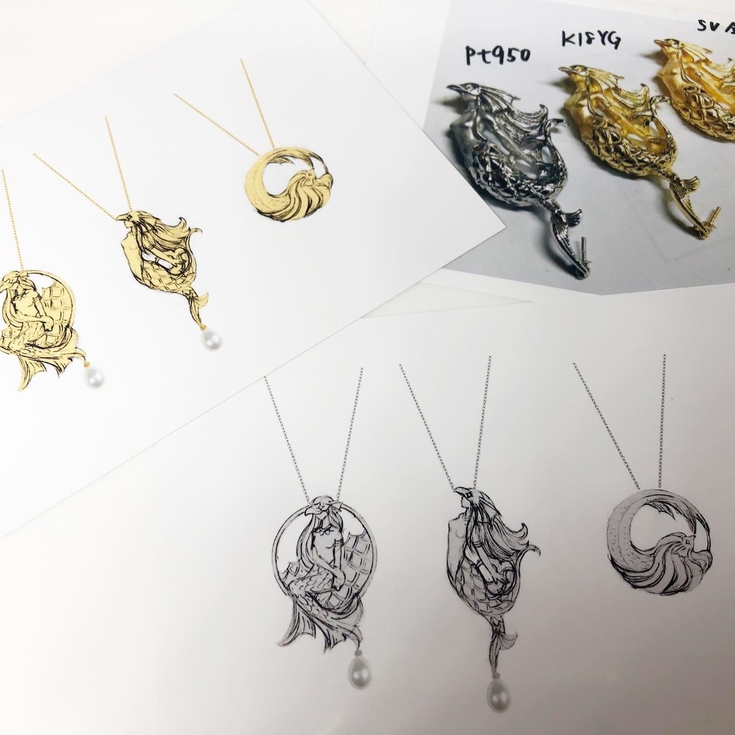 可愛らしいアマビエのアクセサリーが多く作られる中、ジュエラーらしい細部にこだわったペンダントを作りたい。