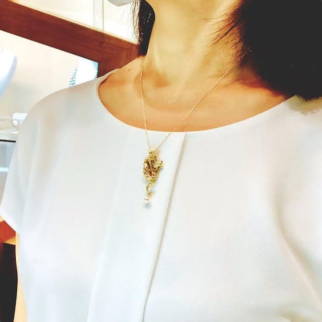 コロナ禍で暗雲が立ち込める中、突如脚光を浴びることになった疫病退散の妖怪「アマビエ」。創業97年のジュエラーの経験を生かし、皆様の健康を願って、未だかつてないスタイリッシュなアマビエジュエリーをお届けしたい!K18YGやプラチナ、シルバーをベースにし、パールを使ったジュエリーを制作致します。