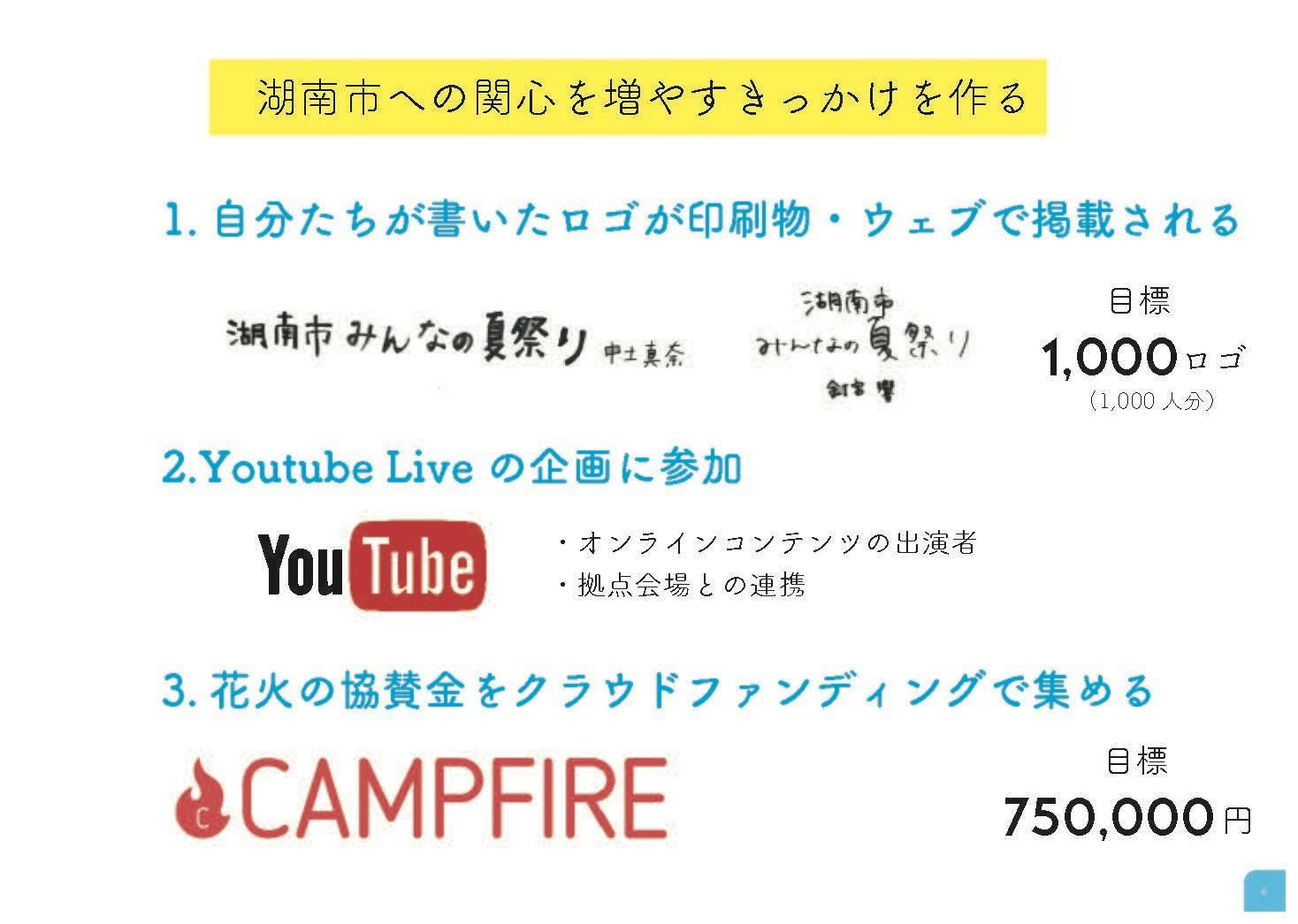 達成できた際には、若い方からご高齢の方、また日本人から外国人まで多くの皆さんに楽しんでいただける内容を発信したいと思います。 そして、コロナ下でもみんなで頑張って支え合っている地元に少しでも元気を与えられるよう、花火を生中継いたします!