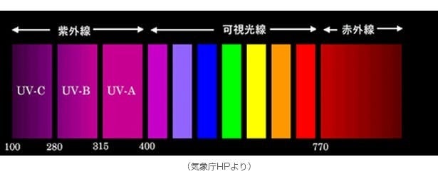 紫外線は波長の長さでUVA、UVB、UVCの3種類に分類されます。