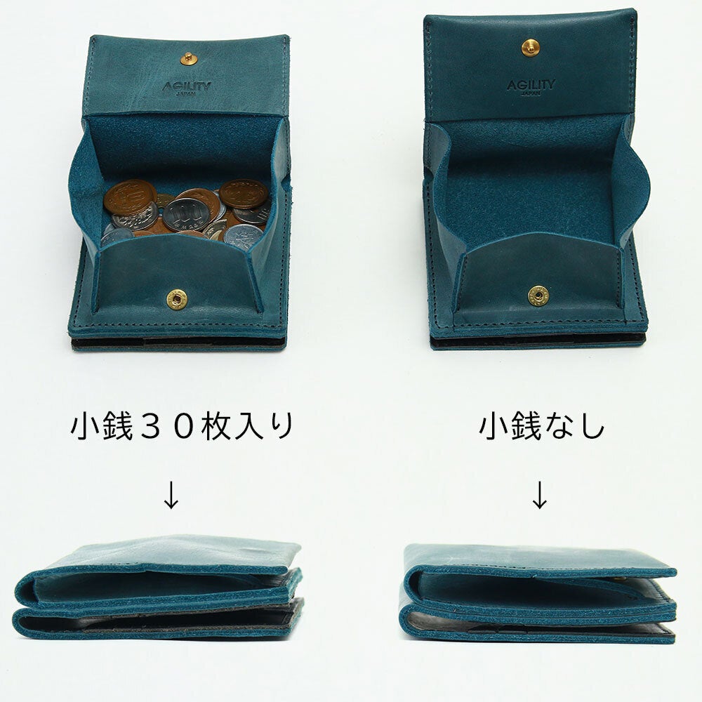 小銭入れは、ボックス型にすることでコインが1ヶ所に集中することを抑え、たくさん入れても膨らみが出ないようにしました。