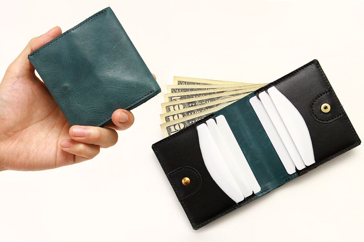 キャッシュレス時代にピッタリなコンパクトな正方形財布です。