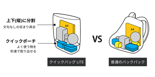 クイックリムーブボトムを採用した、今までになかった2層リュックの「クイックバッグLITE」。