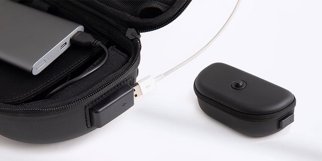 外側にUSBポートが付いていて、いつでもどこでも充電が可能なタイプのポーチです。