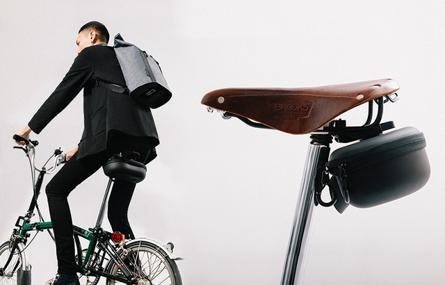 自転車のサドルの下部にクイックポーチを取り付けられるマグネットバックル。お休みの日のちょっとしたお出かけは、これがあれば十分!