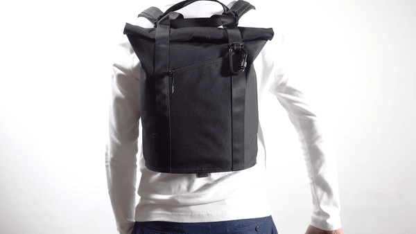 リュックの開口部はロールダウン式で、ファスナーがなくても安全性ばっちり!