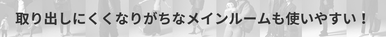 リュックのメイン収納部には、ついついたくさんの荷物を入れてしまい、取り出しにくくなりがち。もちろんこのリュックも、大容量なのでたくさんの荷物は入るのですが…。