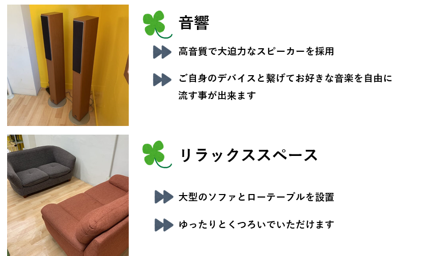 スポーツ系専門学校で講師を務める現役パーソナルトレーナーが常駐し、運動の悩みや身体の悩みについてご指導させていただくことが出来ます。また、常駐のためアルコール消毒や清掃の徹底により安心安全な環境を作りだすことが可能になります。