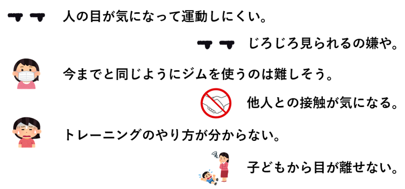 一般的なスポーツクラブは不特定多数の方と同じ空間で運動を行うために、様々な弊害が存在します。