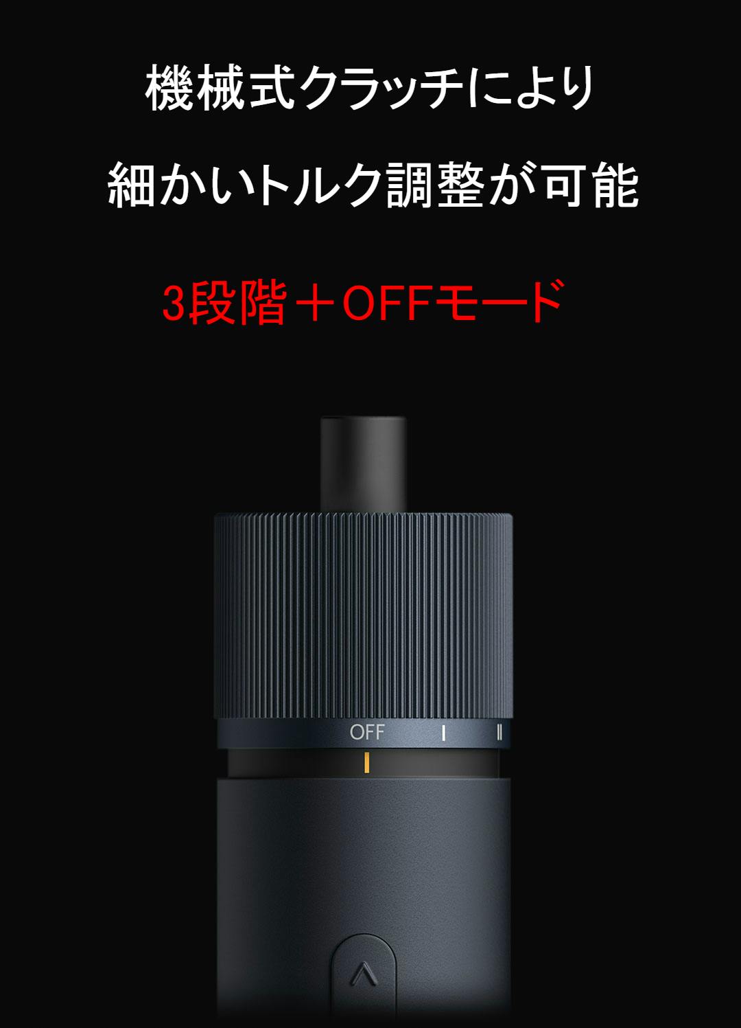 Ⅰ〜Ⅲまでの強さの目安が付いています。ネジや状況に合わせて調節でき、ネジ穴潰れを防ぎます。