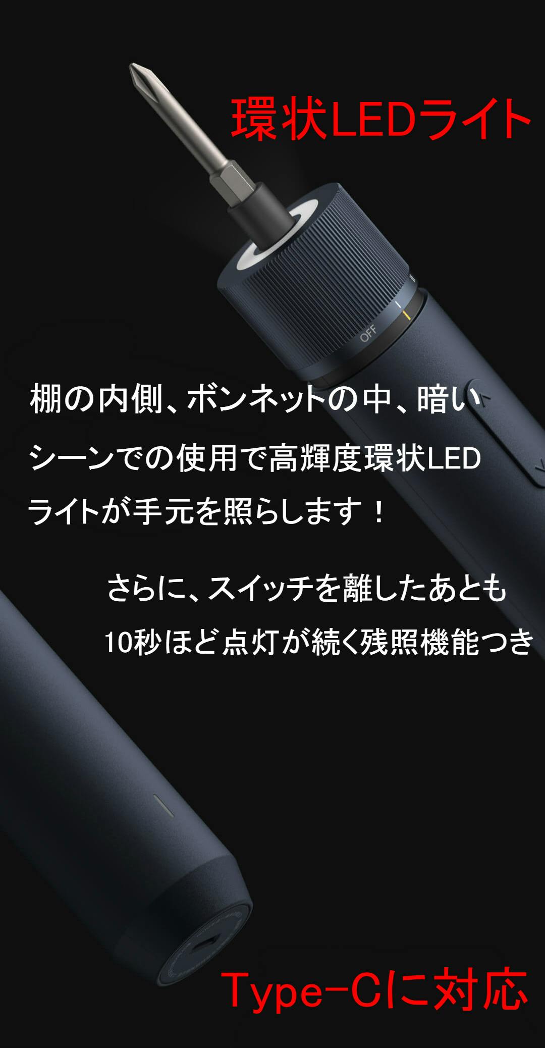 大容量の1500mAhリチウムバッテリーを使用しており、満電状態では約ネジ1000本を取り外し可能になります。