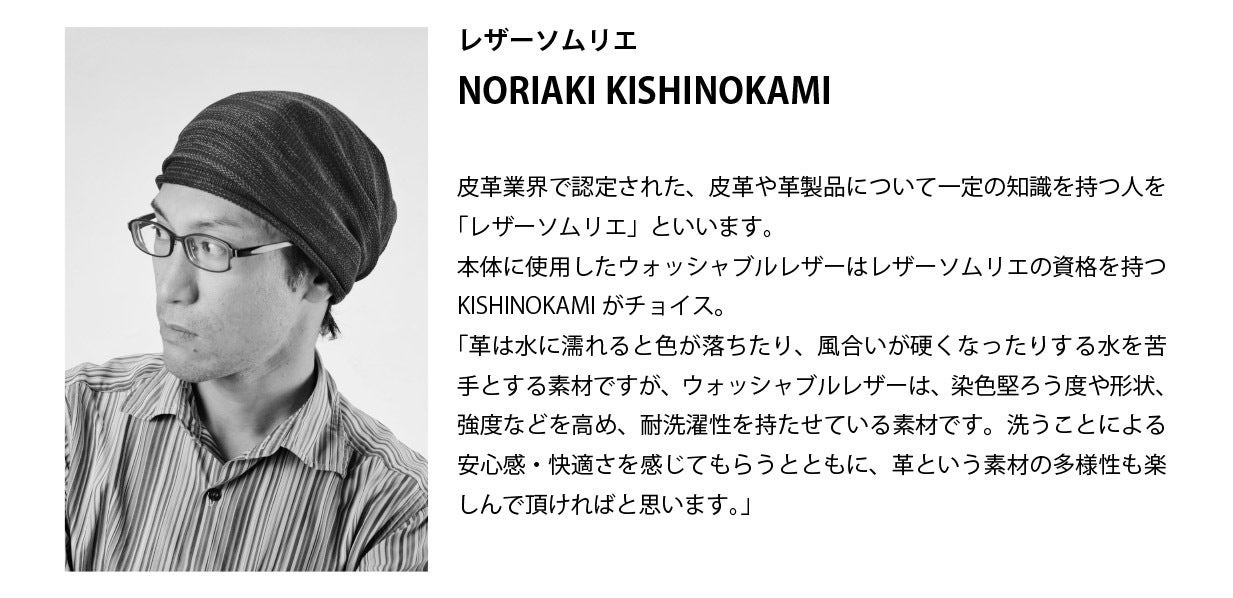 主素材はウォッシャブルレザー。「革は水に弱い」という常識を覆す『洗う』ことが出来る特殊な革を採用しました。
