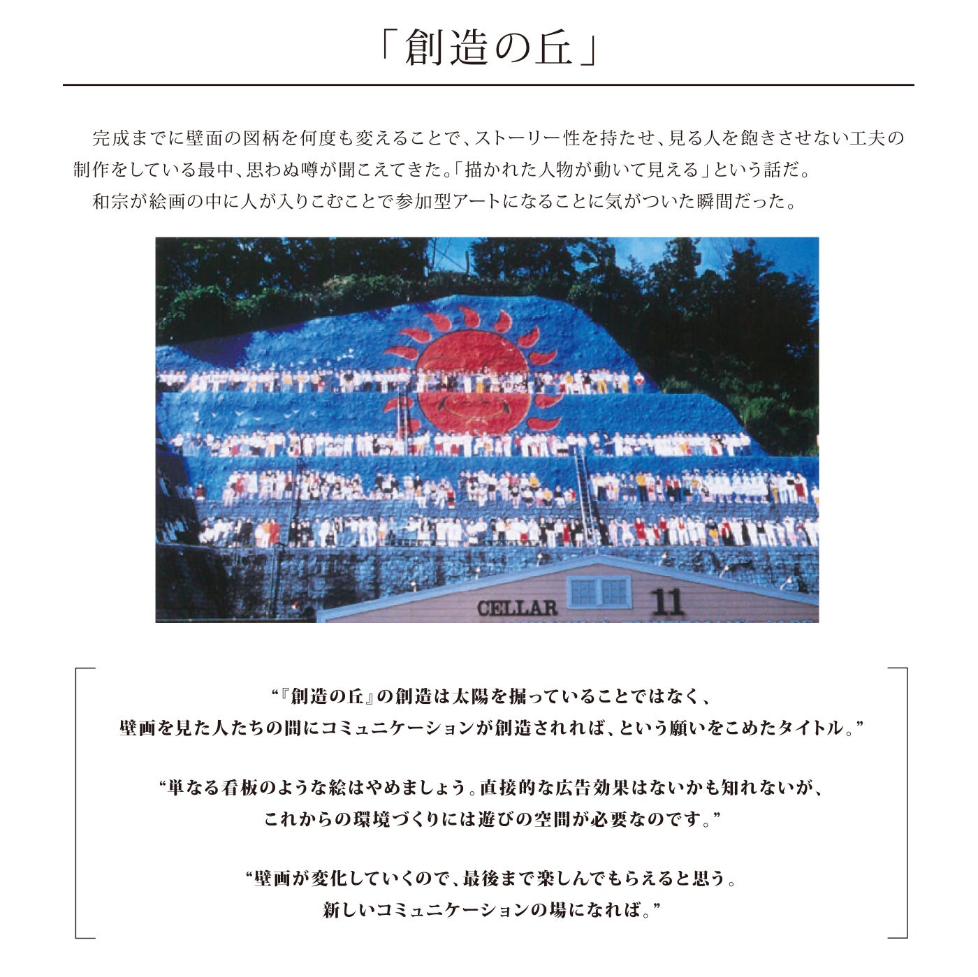 「美術をもっと身近なものにしたい。」という劒重和宗の想い描いた世界を現実にするために、そして子どもたちが笑って遊びながら学べる場所を創り出したい。私たちは様々な場所で楽しんでもらえる作品を作り、世の中をアートで彩り、溢れさせることを目標として、これからも挑戦を続けていきます!