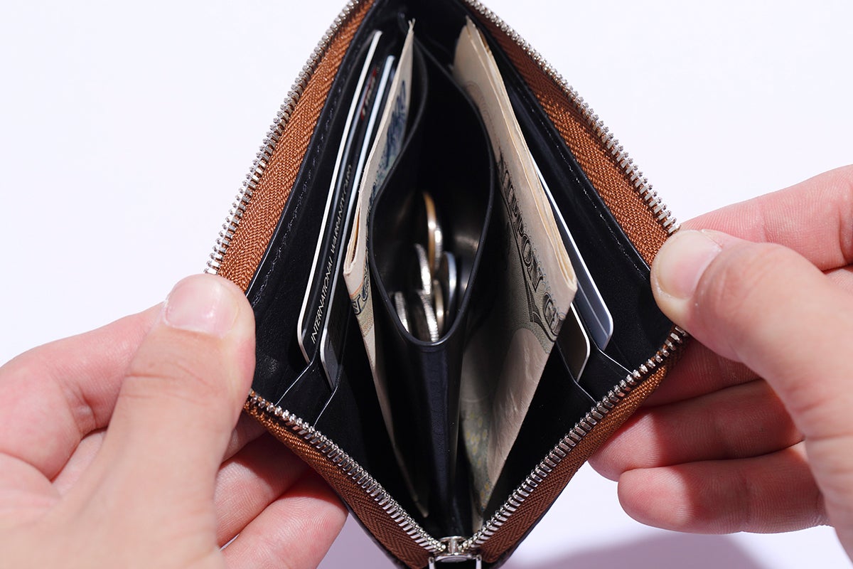 推奨の収納数:カード4〜6枚、硬貨15枚、紙幣10枚
