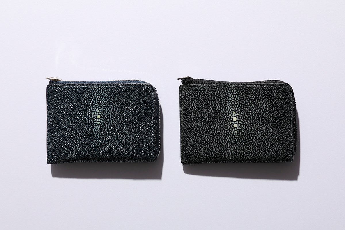 アカエイの皮を加工したもの。ハードな質感と美しいビーズのような突起が印象的な革。牛革の10倍以上の強度があり、長く使いたい人におすすめ。