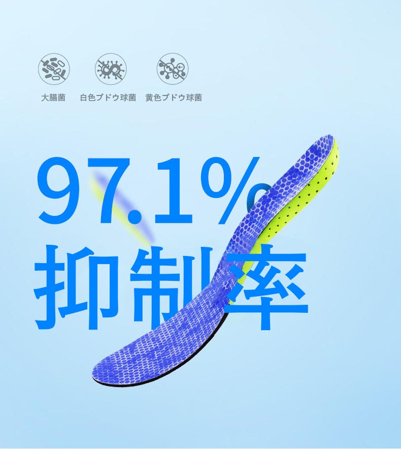 抗菌繊維の作用、そして吸湿・通気性で乾燥した環境を保つことにより、大腸菌、白色ブドウ球菌、黄色ブドウ球菌等の抑制率は97.1%!