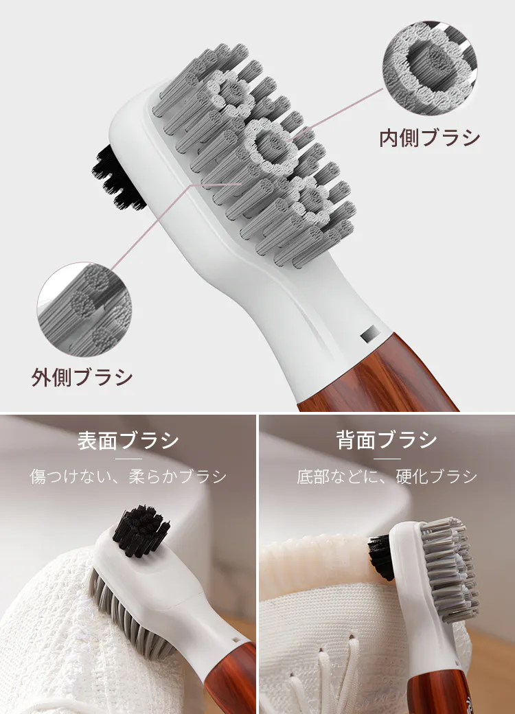 さらに、背面には硬めのしっかりしたブラシが搭載。靴底等も思う存分、ゴシゴシ洗浄可能です。