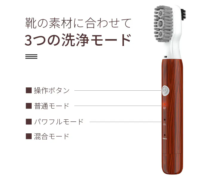 「PULIN」は1分間で最大11,000回振動するパワフル音波を利用して、奥まで入り込んだ汚れも徹底オフ。手洗いのゴシゴシでは落とせない汚れもお任せください。さらに3つの洗浄モードと優秀なナイロンブラシで、スニーカーから革靴まであらゆる靴に対応。1回の充電で半年間使用できる抜群の実用性を持ちながら、持ち手部分の木目でおしゃれもとことん演出。