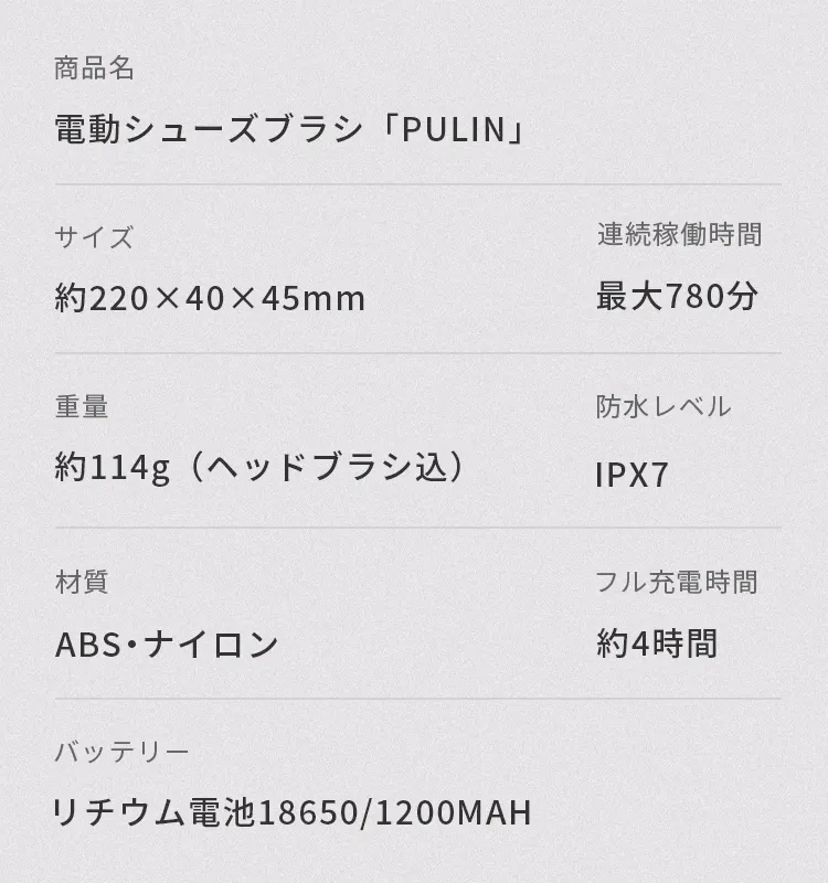 電動シューズブラシ「PULIN」があれば、時間も体力も消費せずに靴のお手入れが可能!靴を傷つけないやさしい洗浄は、靴の寿命も延ばしてくれます。お手入れされたきれいな靴は、きっとあなたを素敵な場所へと導いてくれるはすです。
