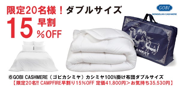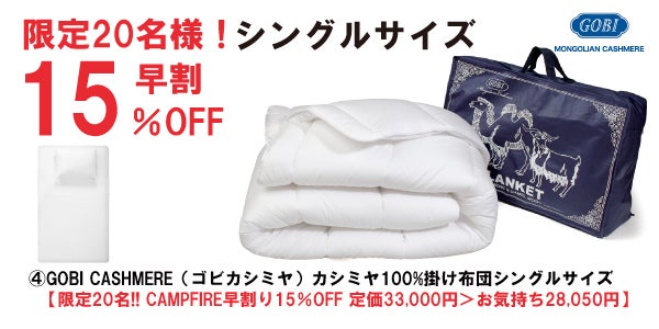世界カシミヤブランドTOP5に選ばれているモンゴルのカシミヤメーカー「GOBIカシミヤ」と共に、高品質のカシミヤ100%を含有した「格安の掛け布団」を開発しました。真冬の快適な睡眠環境を作るこのBEST OF BESTは、極寒の地モンゴルを中心に13カ国40都市以上の展開国で大ヒットしています。
