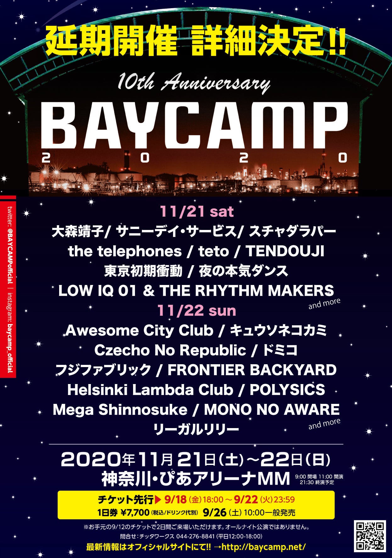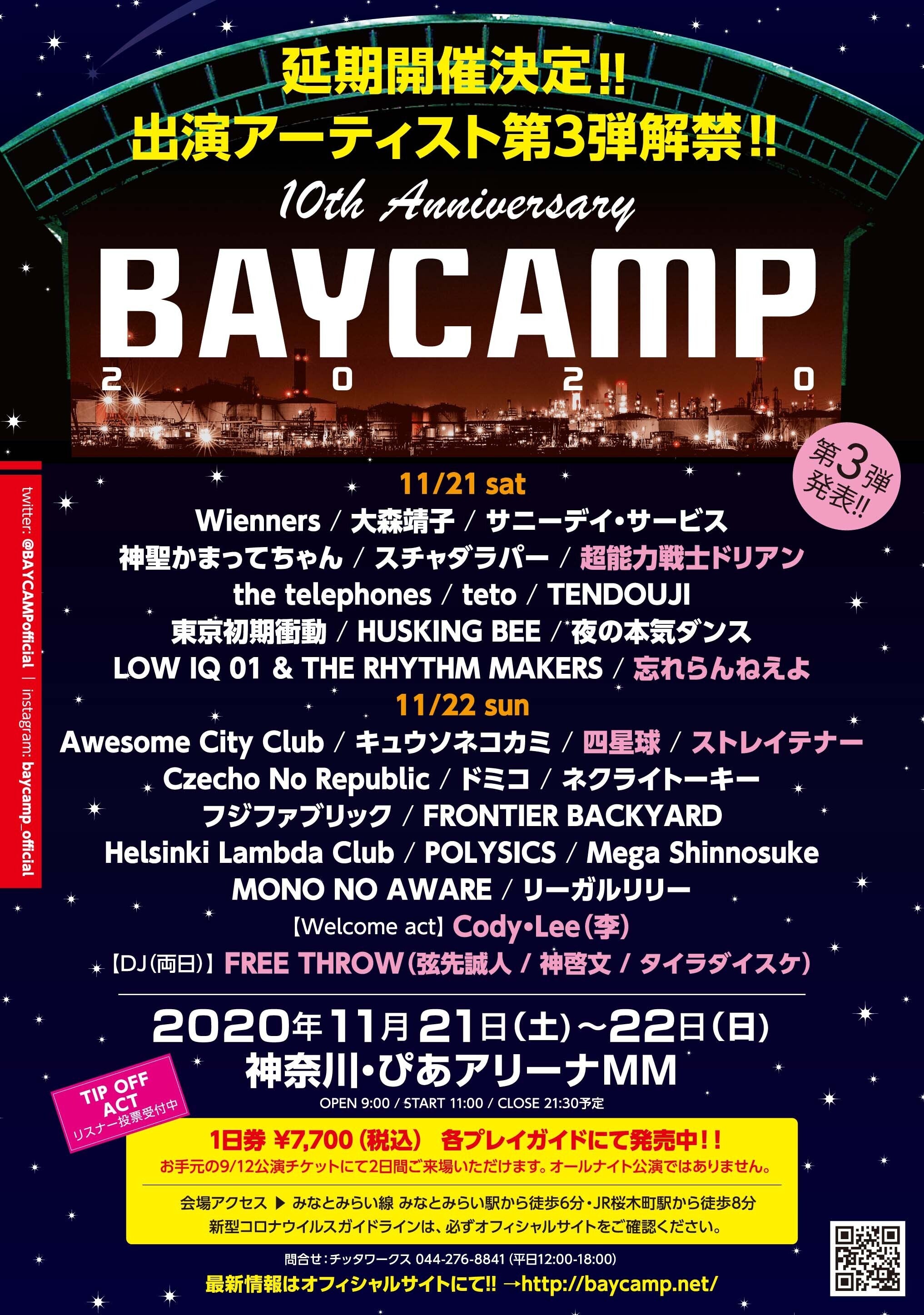 ですが、BAYCAMP実行委員会の意思としては、この記念すべき10回目の開催を目前にして決して諦めることなく、調整を重ね、ついに11月に横浜・みなとみらいに新設された"ぴあアリーナMM"にて開催を決定することができました。