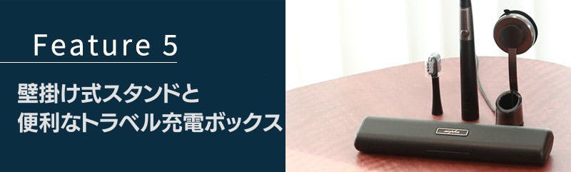 パッケージ内容:arpha電動歯ブラシ本体×1、壁掛け式充電スタンド×1 、トラベル充電ボックス×1 、専用ブラシヘッド×2、充電ケーブル×1