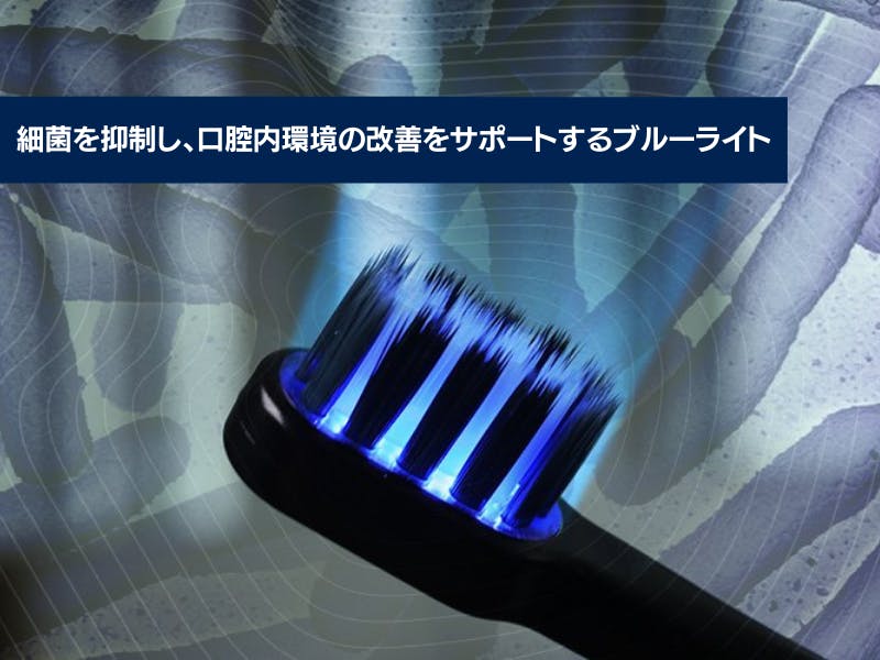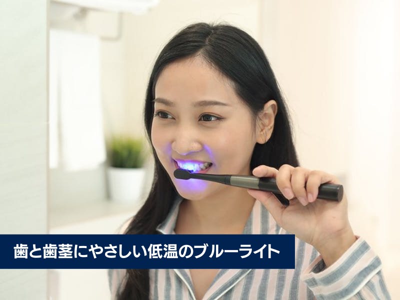 ブルーライトホワイトニング歯ブラシから放出される450〜460ナノメートルのブルーライトは、低温で高強度なものです。歯面に照射すると沈着した色素を除去し、脱色効果を発揮します。