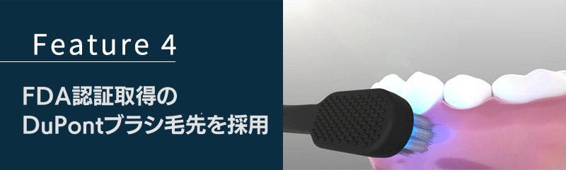 ►FDA認定のDuPontブラシ毛先-歯のエナメル質を傷つけません。また、普通のブラシより耐久性の高い素材です。
