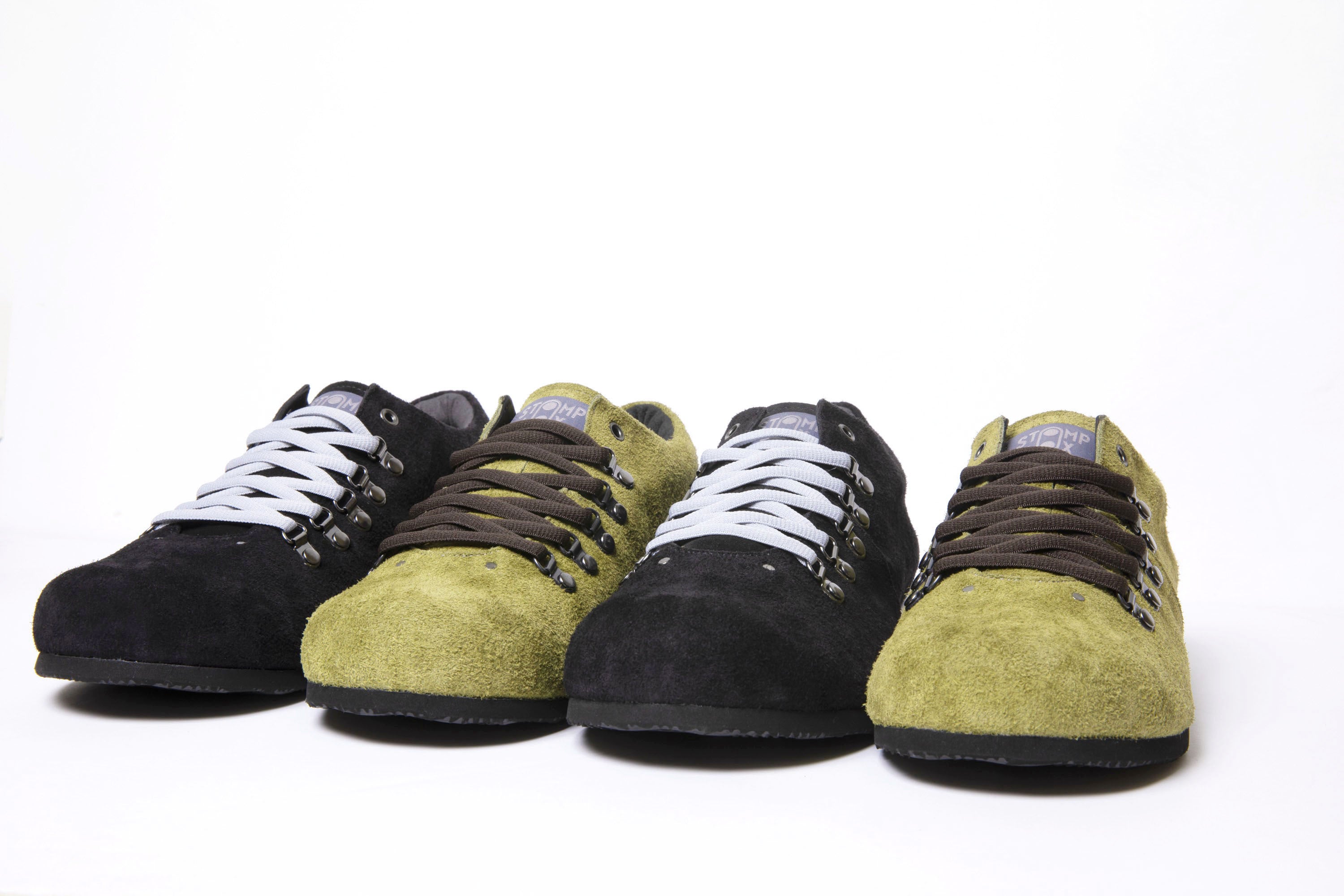 スエード生地の革靴で、カラーリングはブラックとオリーブの2色を展開。スポーツ用ビンディングシューズとは一線を画するカジュアルなデザインが特徴です。