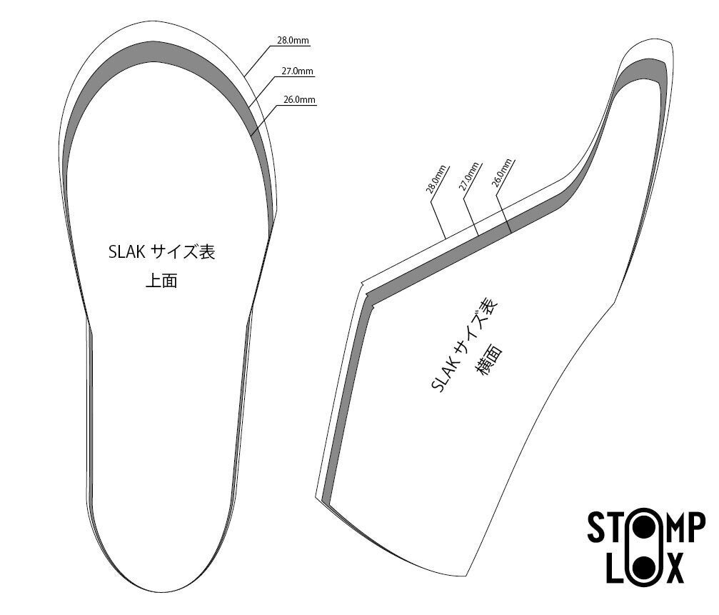 足の先端部分をかなり広く設定し、幅広な足の方でも窮屈に感じることは無いでしょう! 靴全体で足をホールドする気持ちよさもSLAKの特徴です。