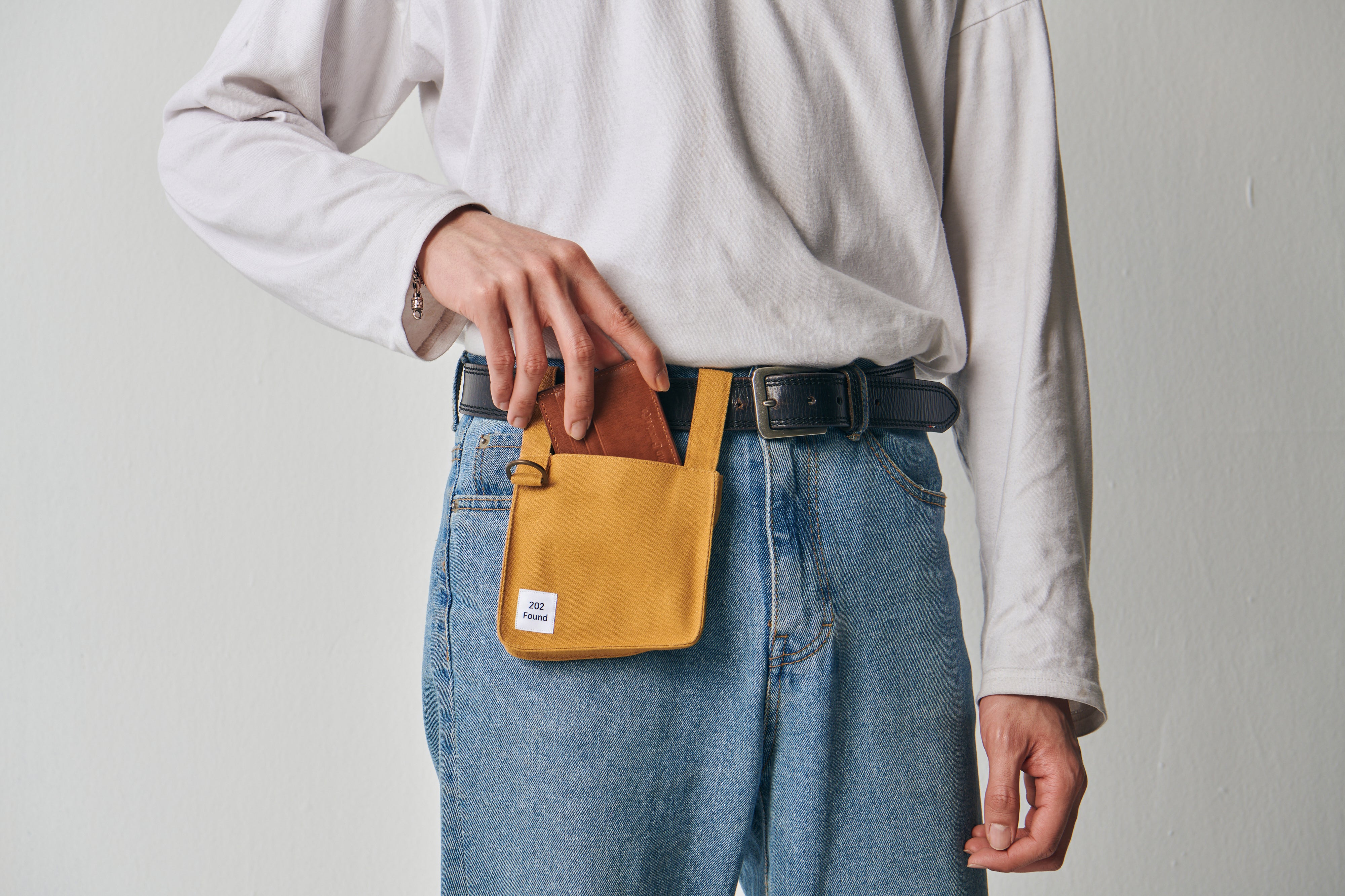 「202ベルトポケット」を使用することで、スマホや財布・小銭・カードをすぐに出し入れでき、両手をフリーにすることができます。最低限の本当に必要なモノだけを持って手軽にお出かけしましょう!