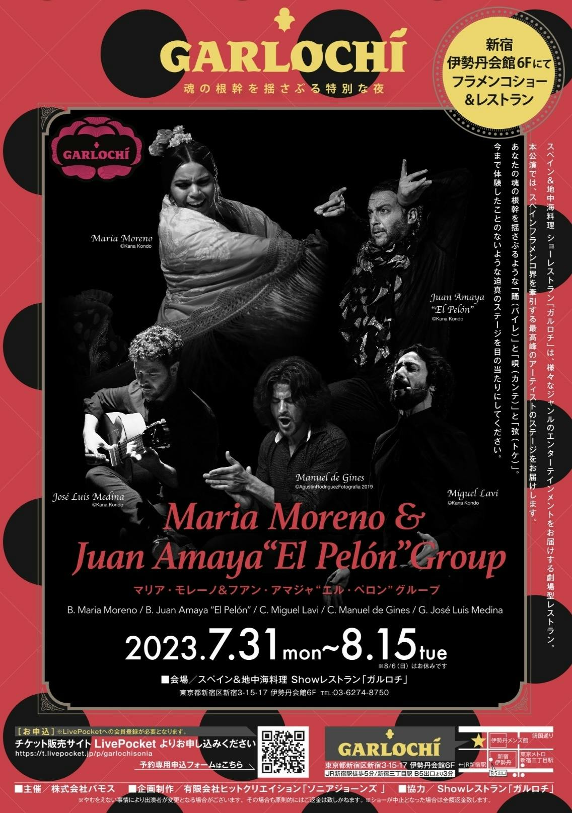 2023/07/24 10:46暑い日が続いておりますが、皆様いかがお過ごしでしょうか?おかげさまで、ガルロチは再始動をしてから、5組目のグループを迎えることとなりました。この、クラウドファンディングが大きな力になり、年に3組のペースで、続けることができております。これからも、皆さんとともに、フラメンコの感動を分かち合うことができたら幸いです。 この場を借りて、改めて感謝申し上げるとともに、今後ともご支援の程、どうぞよろしくお願い申し上げます。いよいよ、7/31(月)~、ガルロチでは、“マリア・モレーノ&エル・ペロングループ”が来日、熱い熱いフラメンコをお届けします!!7/30(日)までは先行割引にて、1,000円引きの価格でご予約いただけます。是非、ご予約お待ちしております!★María Moreno&Juan Amaya “El Pelón” group今年のフェスティバル・デ・ヘレスにて、作品“O../O../.O/O./O. (soleá)”を上演し、大好評を博した“マリア・モレーノ”と、2017年のガルロチ出演で日本のファンを虜にしたフアン・アマジャ“エル・ペロン”が再びタッグを組んで登場!バックミュージシャンも、スペインの第一線で活躍のアーティストが揃って来日!どうぞお楽しみに!【出演期間】2023年7月31日(月)〜8月15日(火)【出演者】B.María Moreno B.Juan Ameaya El PelónC.Miguel Lavi C.Manuel de Gines G.José Luis Medina【場所】Show レストランGARLOCHÍ東京都新宿区新宿3-15-17 伊勢丹会館6F【ご予約】WEB:https://t.livepocket.jp/t/maria_pelonEmail:garlochilive@gmail.com皆様のご予約お待ちしております!株式会社バモス GARLOCHÍ もっと見る