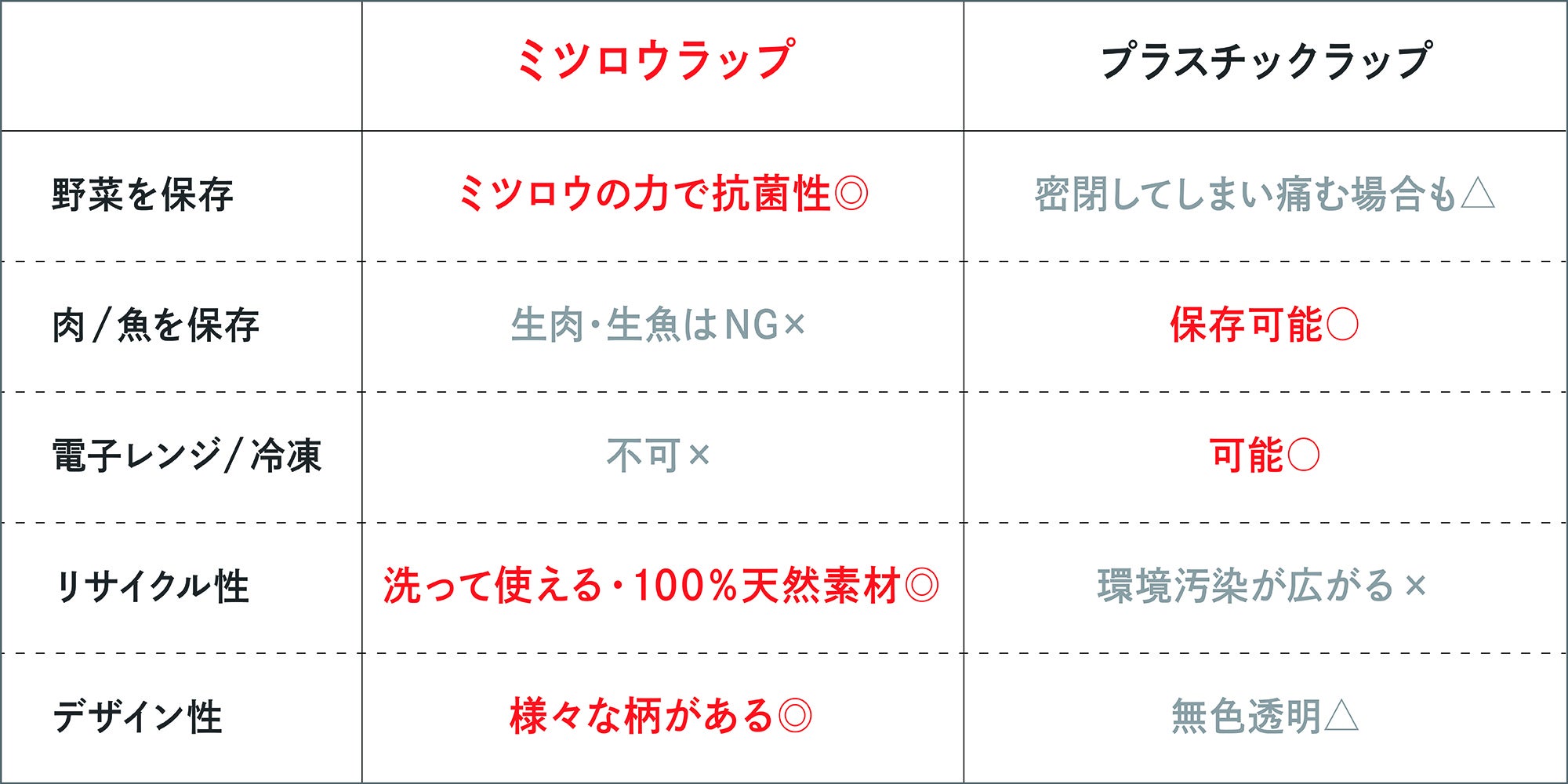 プラスチックラップとの違いは、下のようになっています。