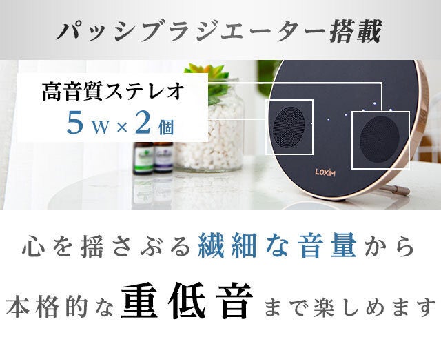 低音域を増幅するスピーカーユニット、パッシブラジエーターも搭載されており、しっかりとした重低音の響きが楽しめます。