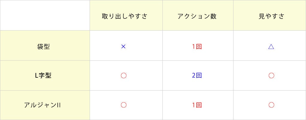 つまり、『袋型』、『L字構造』それぞれ一長一短という訳です。