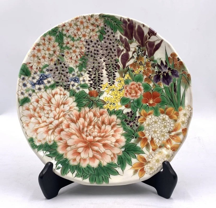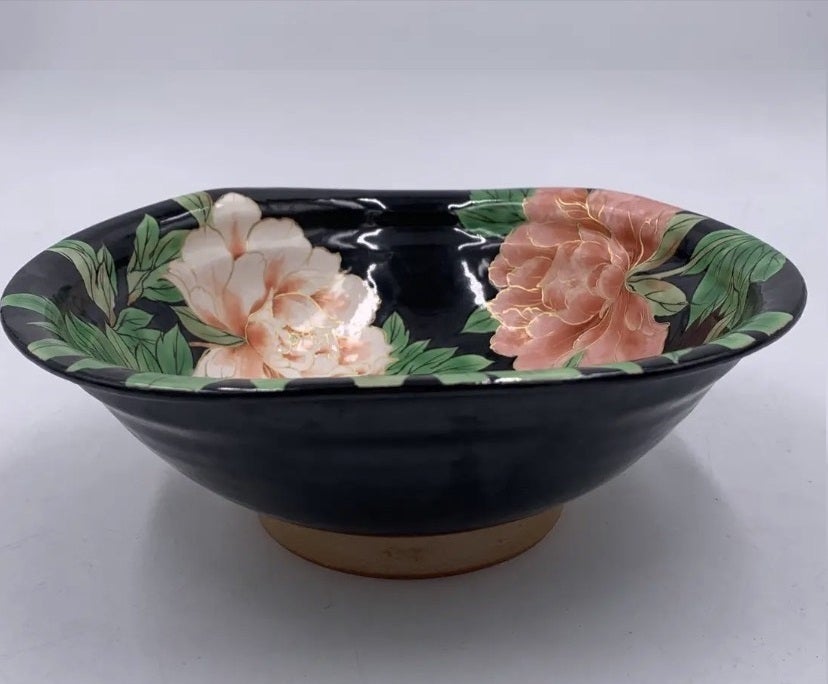 ■2万円【気軽に1点物 黒字に牡丹柄の華やかな器】