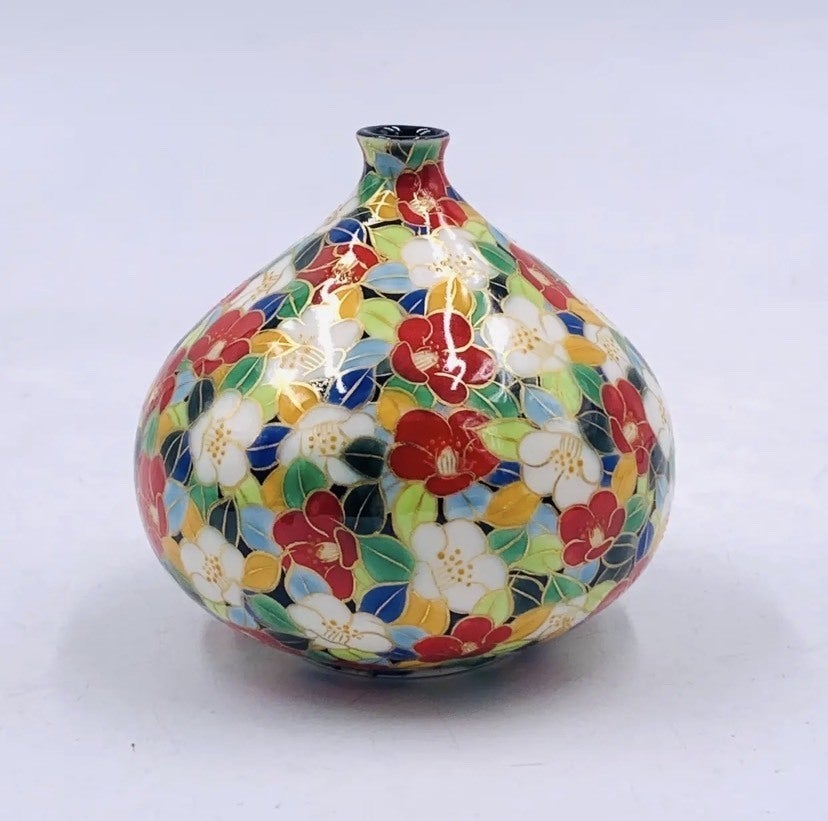 椿柄の一輪挿し。玄関やリビングの華やぎにもたらします。