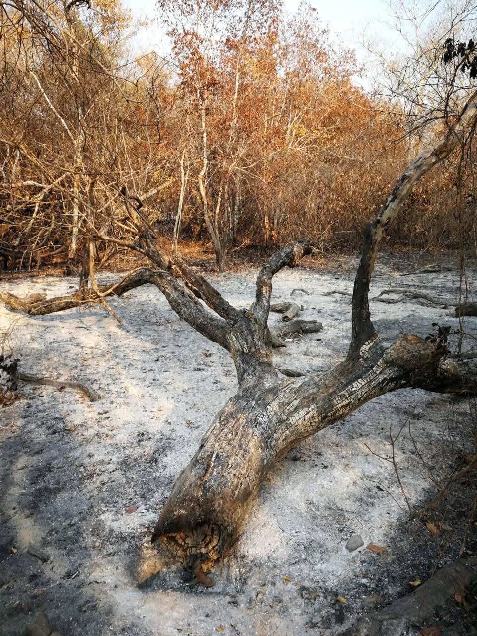燃え続けるパンタナール_湯川氏提供 消火活動に明け暮れていた8月19日(水)、一本の心ないマッチ(放火)により現地在住日本人・湯川氏が管理する約800ヘクタール(3.0kmx2.7km、東京ドーム170個分)の敷地がほぼ全て焼失しました。