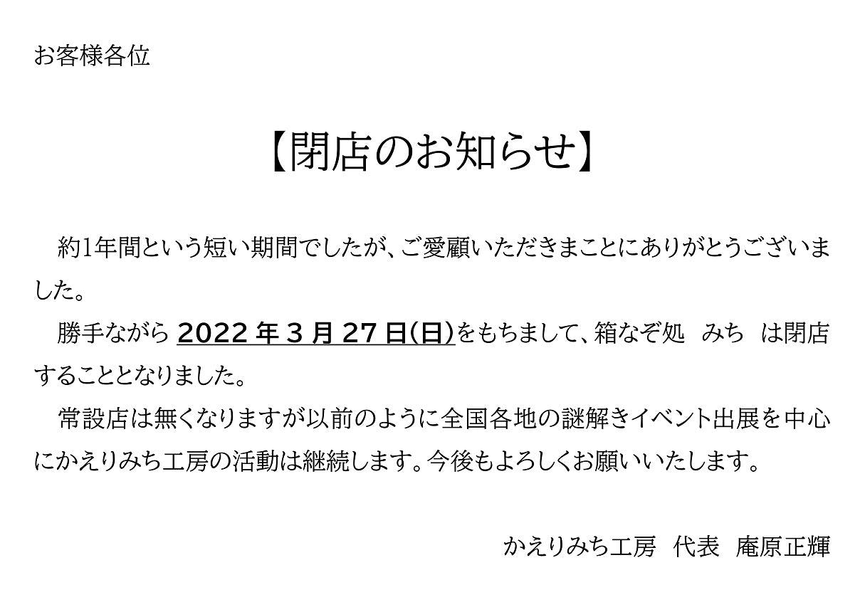 箱なぞ処 みち 閉店のお知らせ