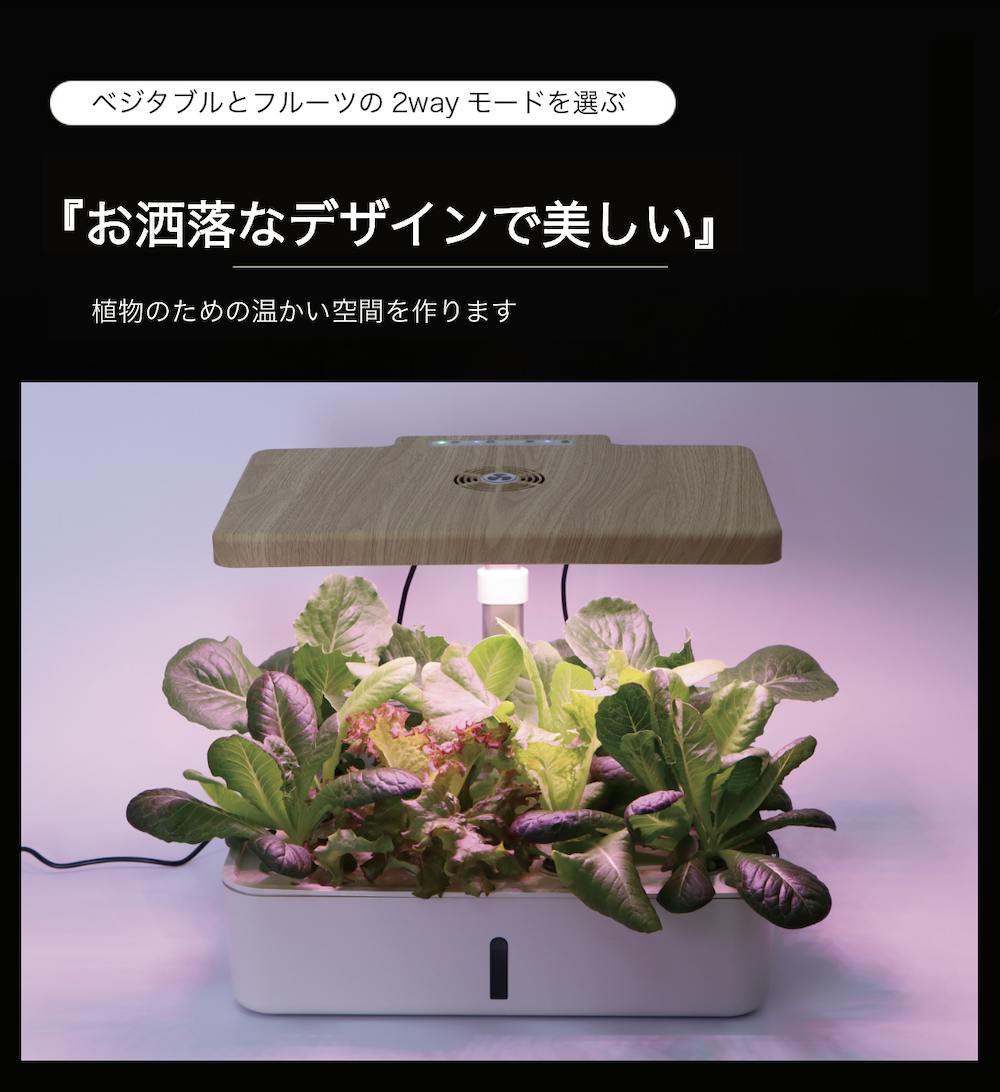 ① 自宅で簡単、スイッチ押すだけインテリ水耕栽培!