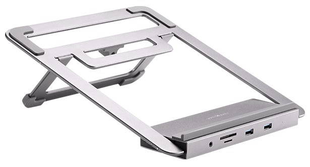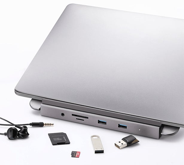 この【ドッキングスタンド】は高速データ通信対応のUSB3.0をはじめSDスロット、PD、4K HDMI 、1080P VGAなど各種デバイスで使われる13個のコネクタを一堂に搭載。
