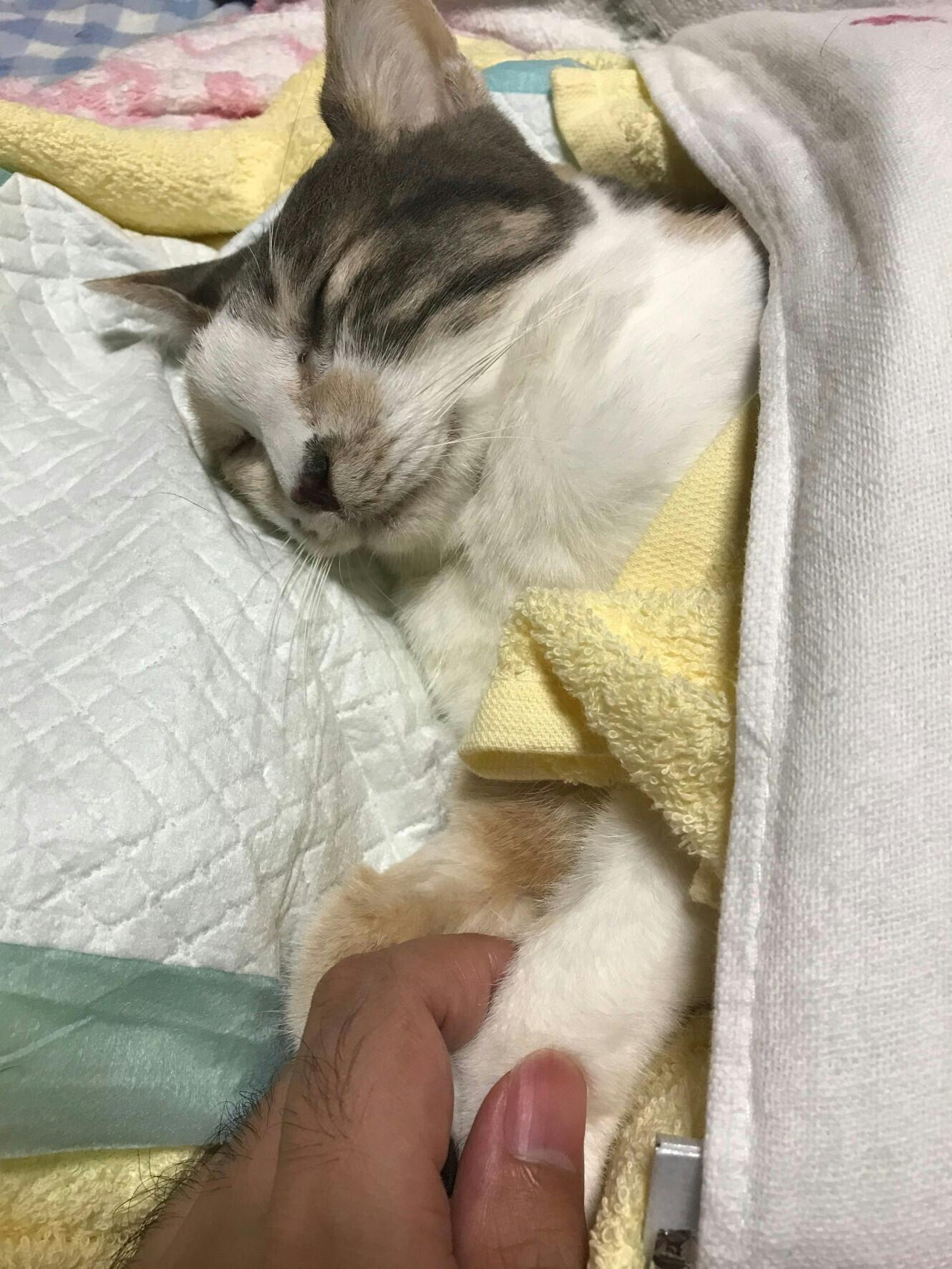 また、みーの目の飛び出している姿は可愛そうで辛くて撮っていませんでした、申し訳ありません。下図の時も突出してるのですが麻酔後で目が開かずわかりにくいです。