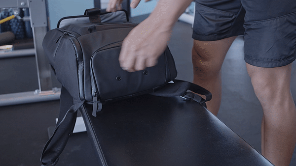 スポーツジムに。メインポケットから完全に仕切られたシューズ用ポケットや、拡張可能なボトルポケットを備えたDAYFARERは、スポーツジムに持っていくバッグとしても最適です。
