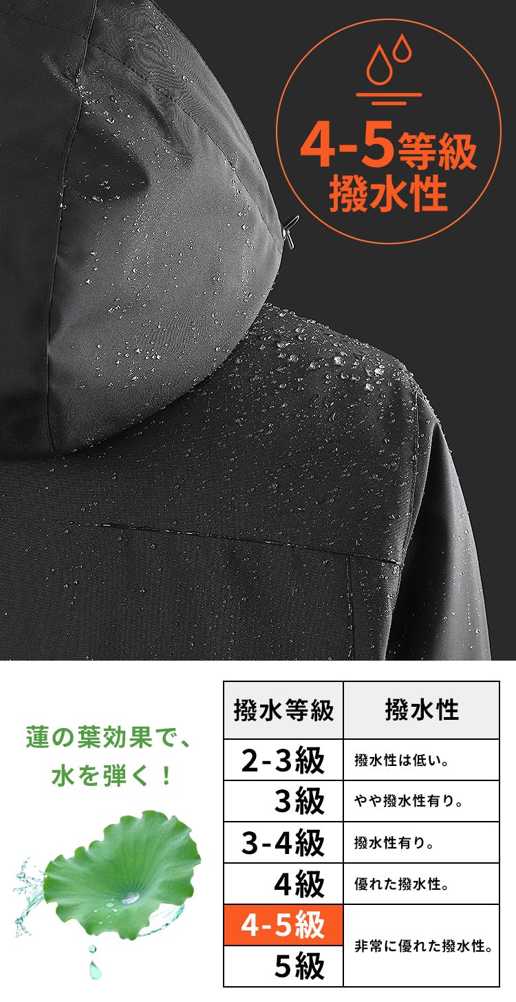 ※撥水等級は海外の指標です。4-5等級は最高レベルの撥水性能を示しています。