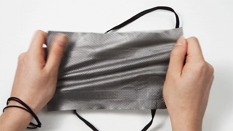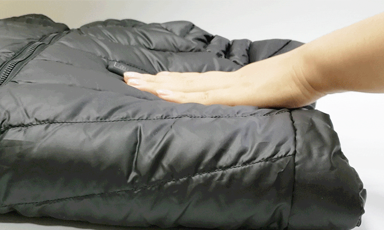 ▲ダウン内部の発熱シートを取り出してみました。くしゃくしゃにしても、この通り。高強度で安心です。