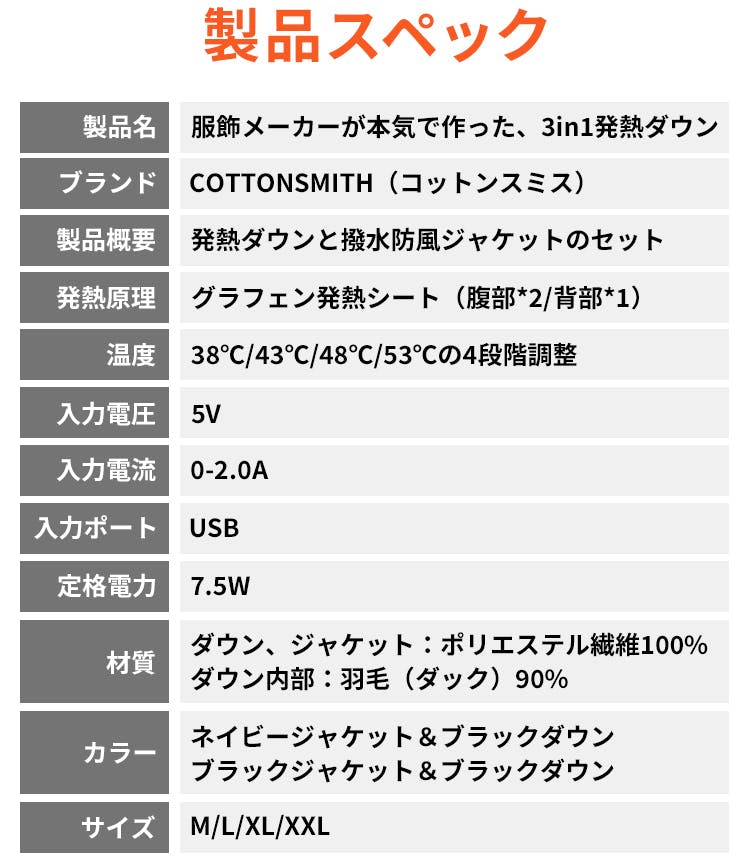 服飾メーカーCOTTONSMITH(コットンスミス)は、そんな現状を変えるべく、専門メーカーならではのノウハウをぎゅっと詰め込んだ、究極の3in1発熱ダウンを開発しました!