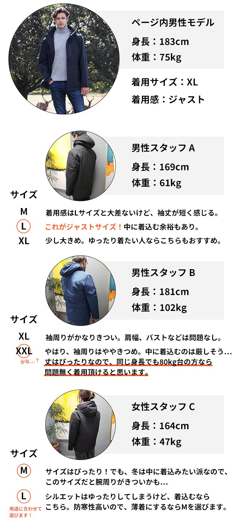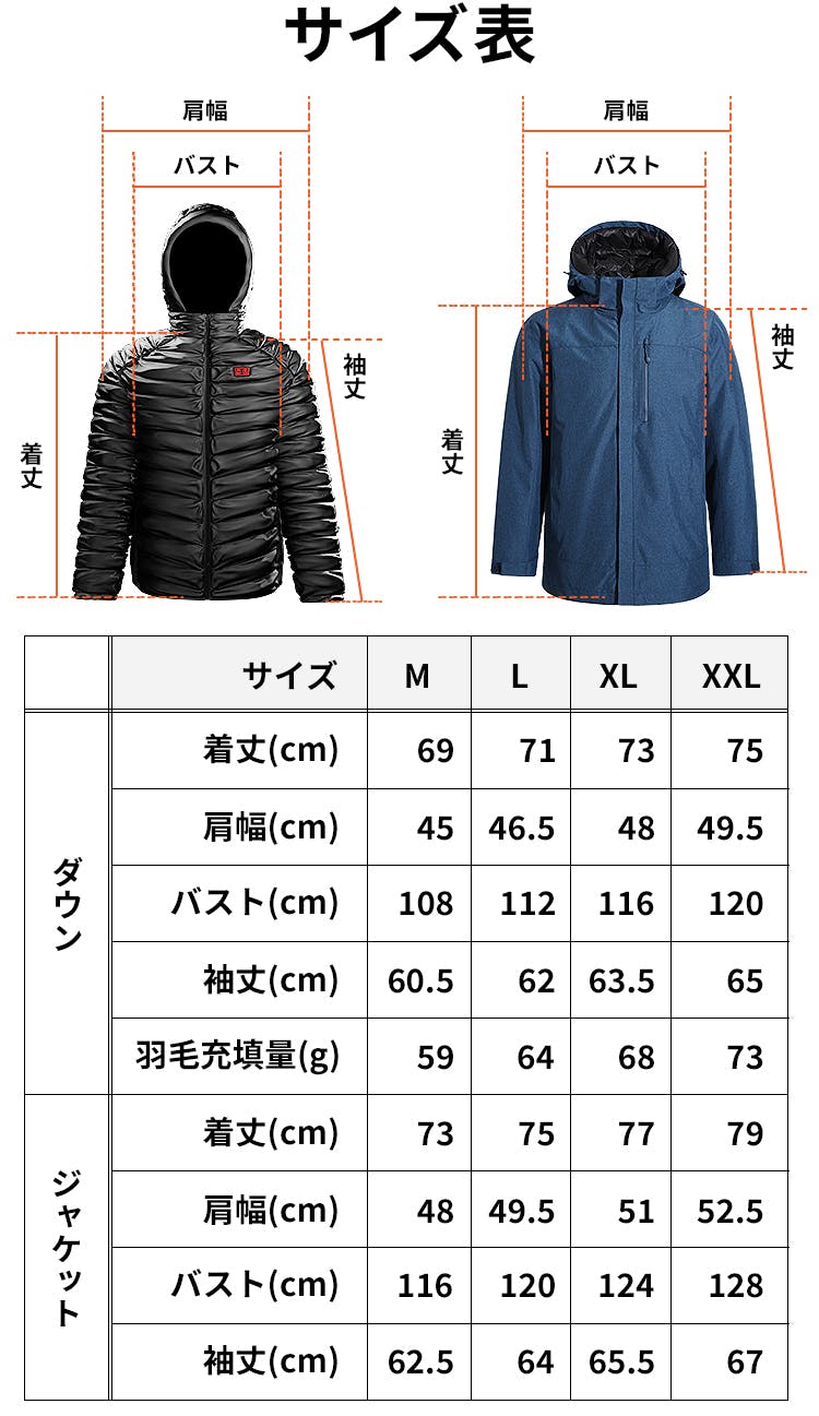 ※ダウンとジャケットは、同サイズでのご用意となります。Mサイズのダウンと、Lサイズのジャケットなど、組み合わせを変更することは出来ません。