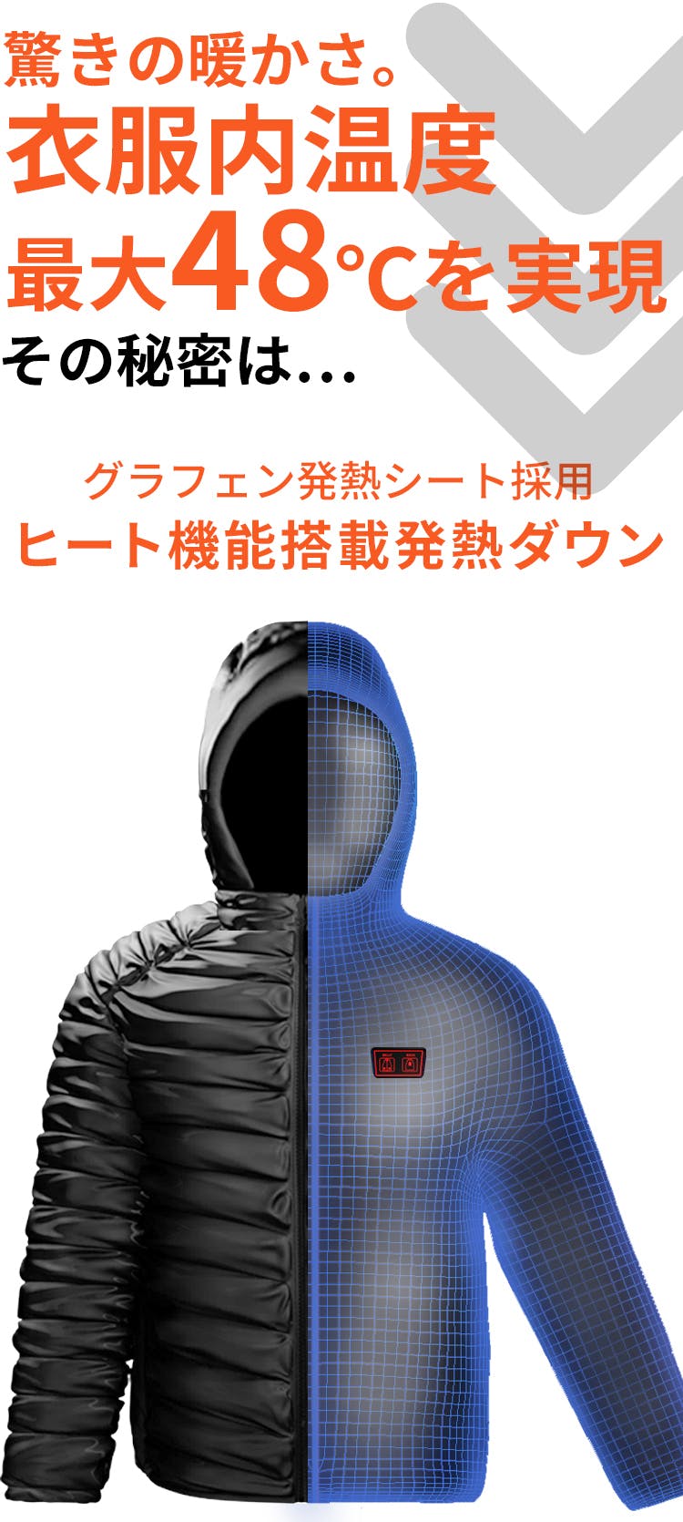 ※ジャケットには、発熱ヒーターは搭載されておりません。