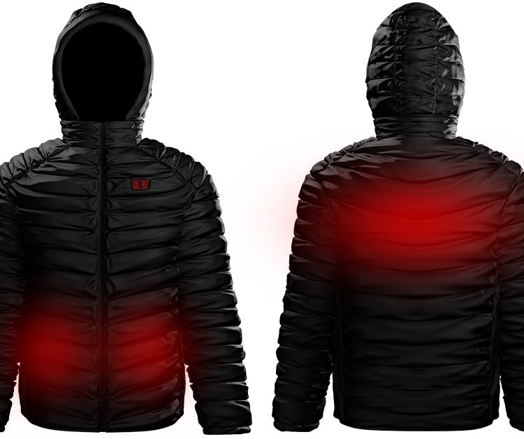 A:いいえ。発熱ダウンの背中1箇所、腰ポケットのあたり左右2か所に内蔵されている、3か所の発熱シートが電力であたたかくなる仕組みです。なお、撥水防風ジャケットには、発熱シートは内蔵されておりません。